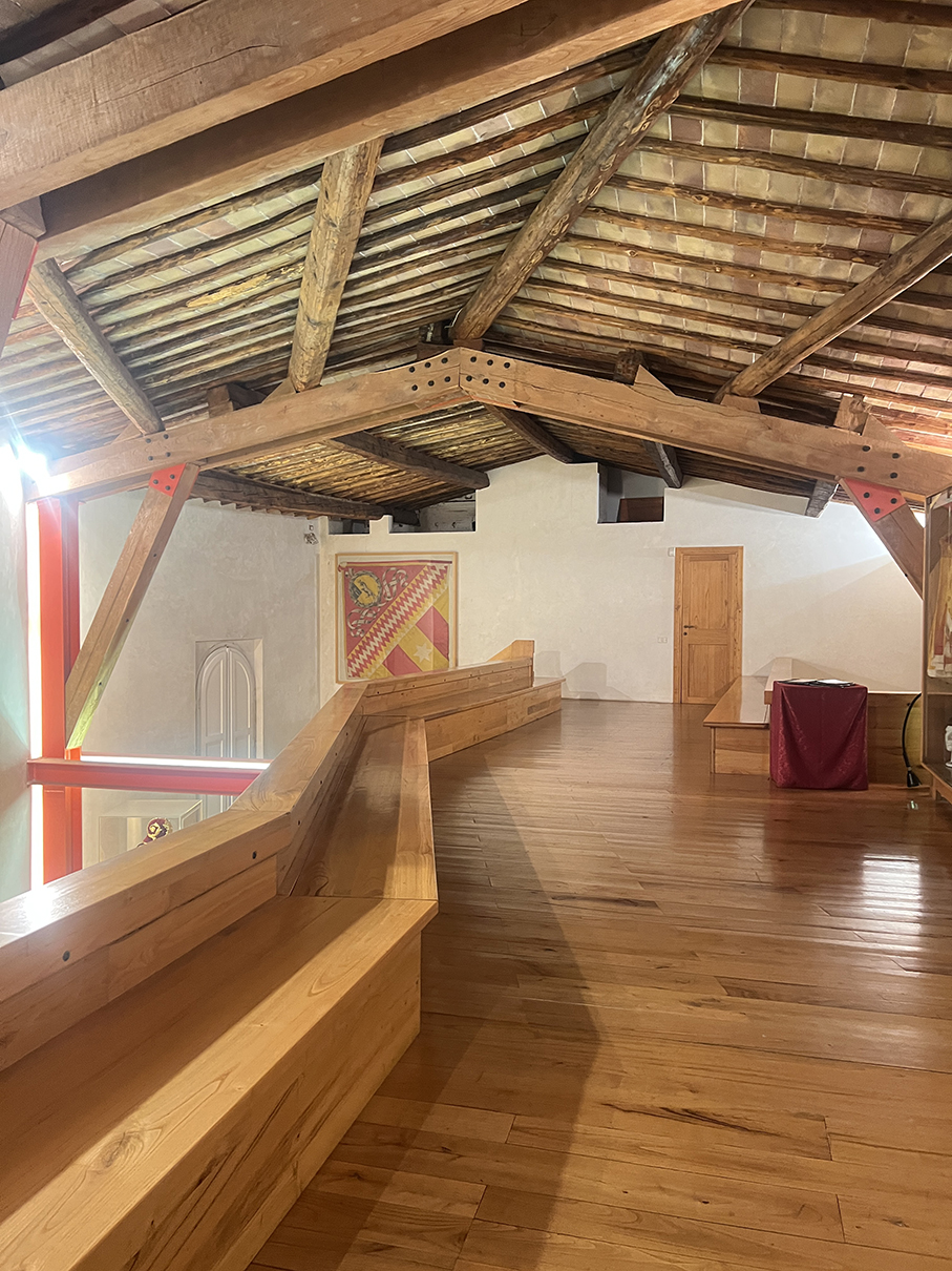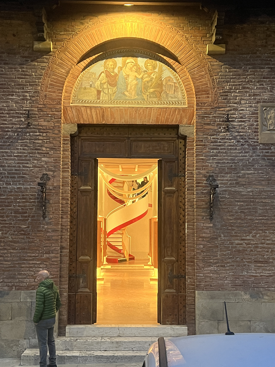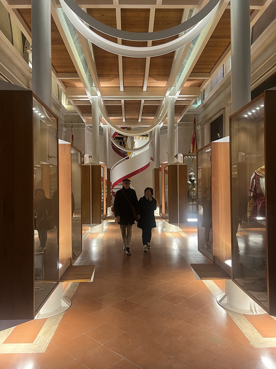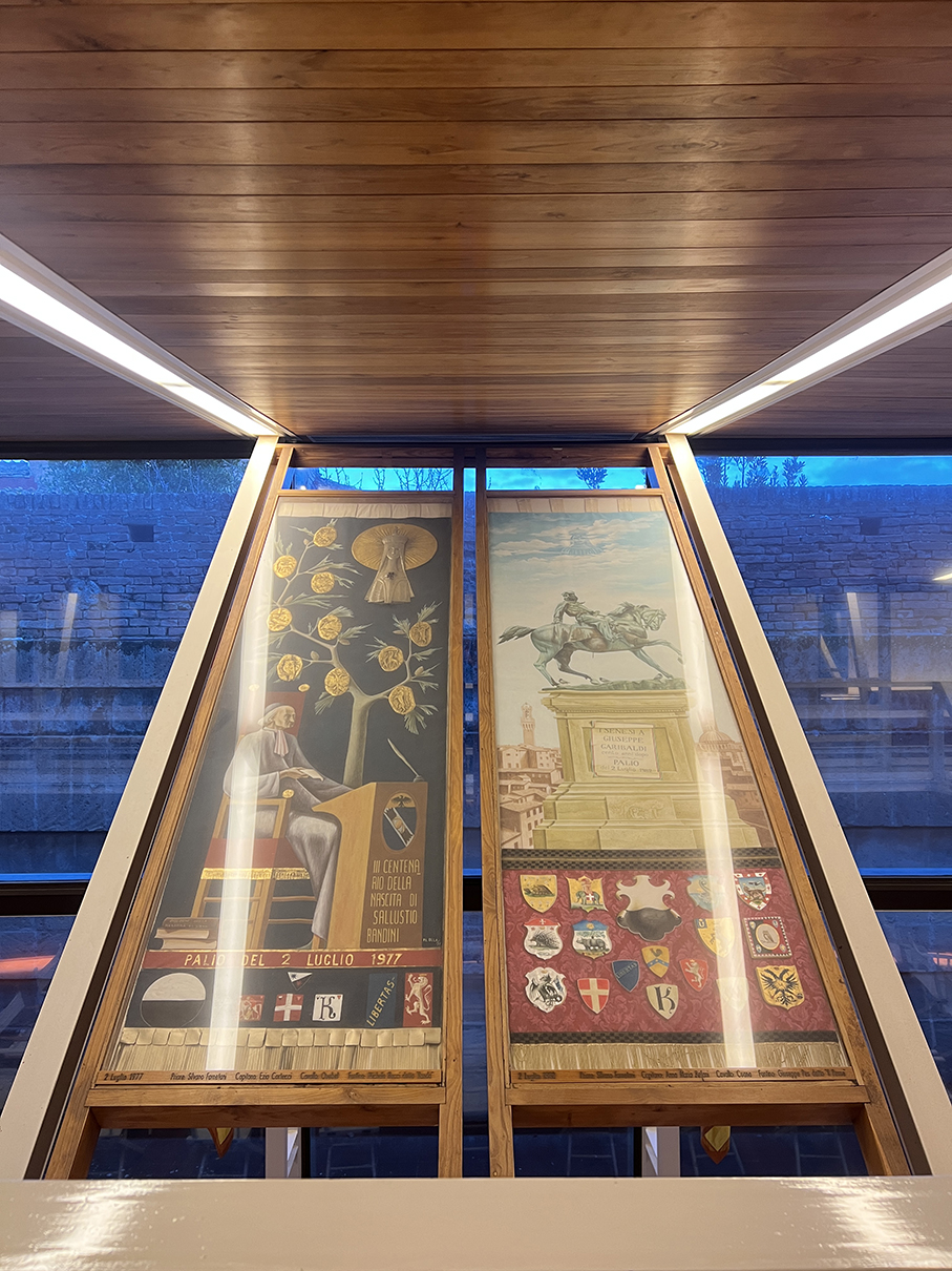 后来gemini给我八卦:建筑师不仅想做流动的空间,还想做开放的空间。如果能自由自在从各个level进入和穿梭于建筑之间,可想而知会有多美妙?!然而锡耶纳各区人民过于好斗,再加上公牛区的死敌贝壳区就在不远的地方虎视眈眈,如果不把所有的门都锁起来小心看护,没准哪天晚上几百年辛苦赢到的奖杯和彩旗就被人偷走了。所以一个游览小tip:各区的区议会厅和区博物馆虽然都精雕细作,但属于本区私产,并不对外开放,地图上也很难查到准确位置。大家请全凭运气,佛系参观。